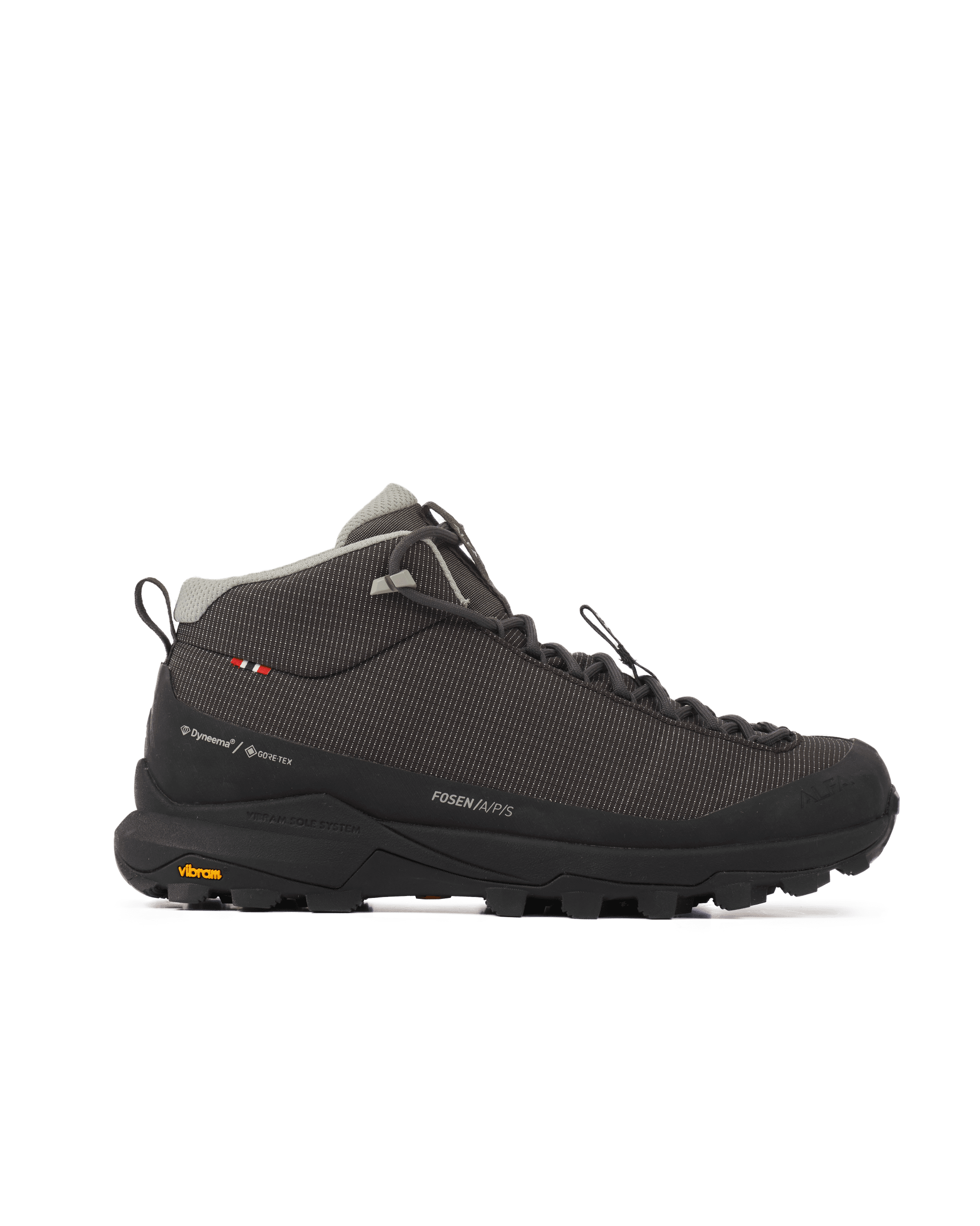 Conquer Technical Trails with lightweight Precision. There’s something empowering about choosing the harder path — the steeper hill, the longer route, the trail that makes your legs burn and your heart beat harder. If that’s where you find your focus, your freedom, your strength — then Fosen was built for you. Not sure which size to choose? If you're between two sizes, we recommend going one size up. Why it is your trail partner on tougher terrain: Light, fast, and made for motion. At just 367g (EU 39), Fosen gives you the agility of a low-cut shoe with the confidence of a mountain boot. It’s perfect for those who move quickly and purposefully over uneven, technical trails. • Dry feet in wet conditions. The GORE-TEX® with ePE membrane (PFAS Compliant), keeps your feet dry, no matter the forecast. Breathable, waterproof, and built for unpredictable weather. Fosen respects both your journey and the planet. • Precision fit for better control. The extended lacing system lets you fine-tune the fit for your foot and terrain — tighter for descents, looser for open flats. It’s support adapts to how you move. • Secure and comfortable footing when the trail fights back. Built on Alfa’s NORTIK last, Fosen hugs your foot while giving it room to move naturally. The design keeps you balanced, reduces fatigue, and gives you control when every step counts. • Stronger than it looks and made to last. Crafted with a bio-circular Dyneema® fiber, this upper is lightweight but tough — resistant to abrasion, wear, and time. Built for easy repair. They're light enough to let you keep climbing, strong enough to handle rough ground, and smart enough to keep your feet dry, stable, and comfortable from base to ridge. The versatile look let’s you use this at any point of your journey, from you exit your door, to the top of a mountain. For the hikes that challenge you — and the ones that remind you why you love it. Fosen is the shoe for those who seek out elevation, push through switchbacks, and smile at the top — not because it was easy, but because it was worth it. Footprint: Open factory list Bio-based Dyneema® Repairable solutions ePE GORE-TEX membrane PFAS Compliant