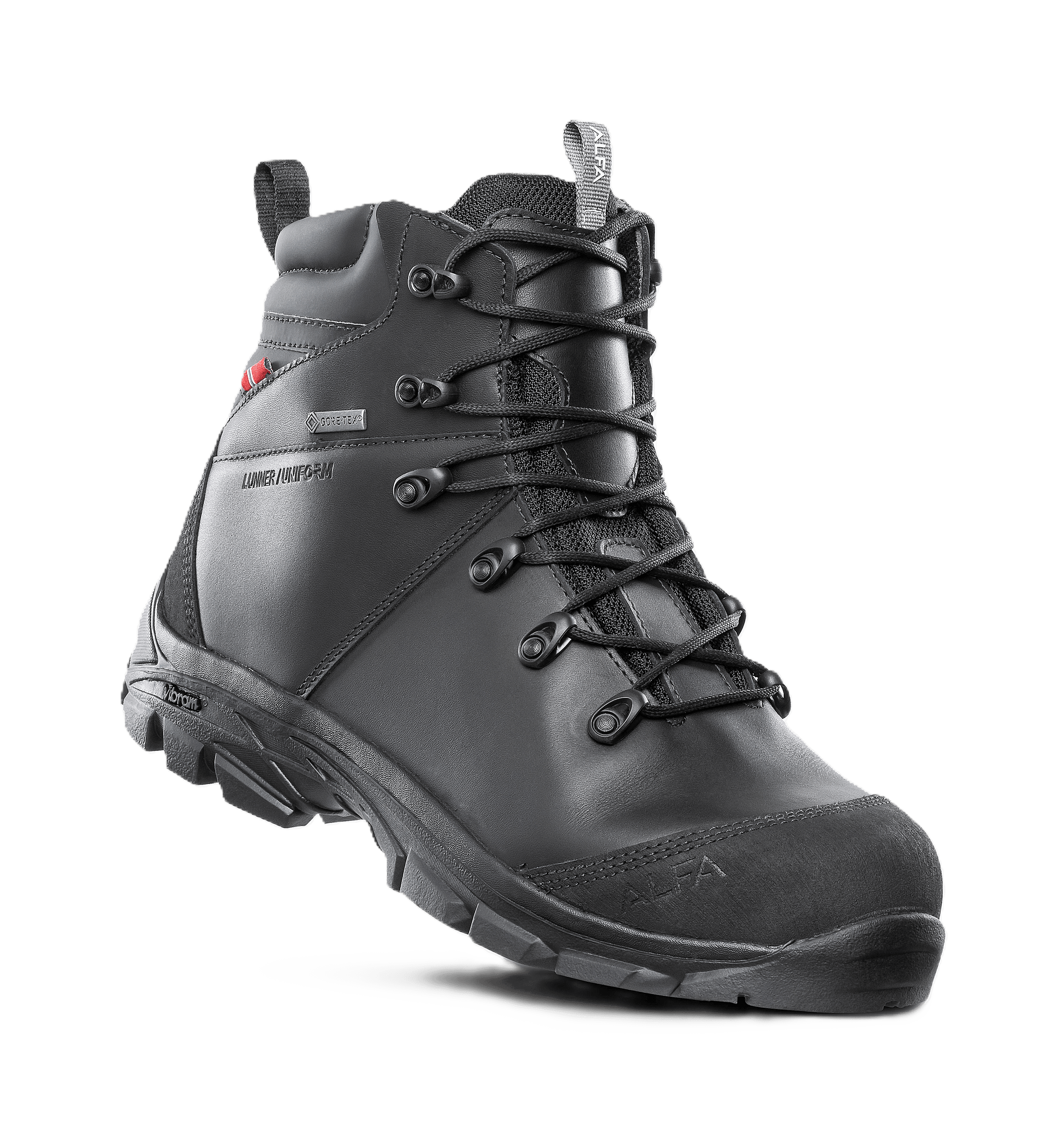 Uniform shoes that take care of the uniformed user's varied and demanding challenges. Made of durable full-grain leather. The shoe is lined with GORE-TEX which optimizes the overall comfort of the foot. The GORE-TEX membrane contributes to the shoes being well suited in wet and dry conditions, as well as summer and winter. Vibram Multigrip sole with large knobs ensures good stability and good grip even on slippery surfaces. Shock and moisture-absorbing insole that provides a good climate for the foot all day.