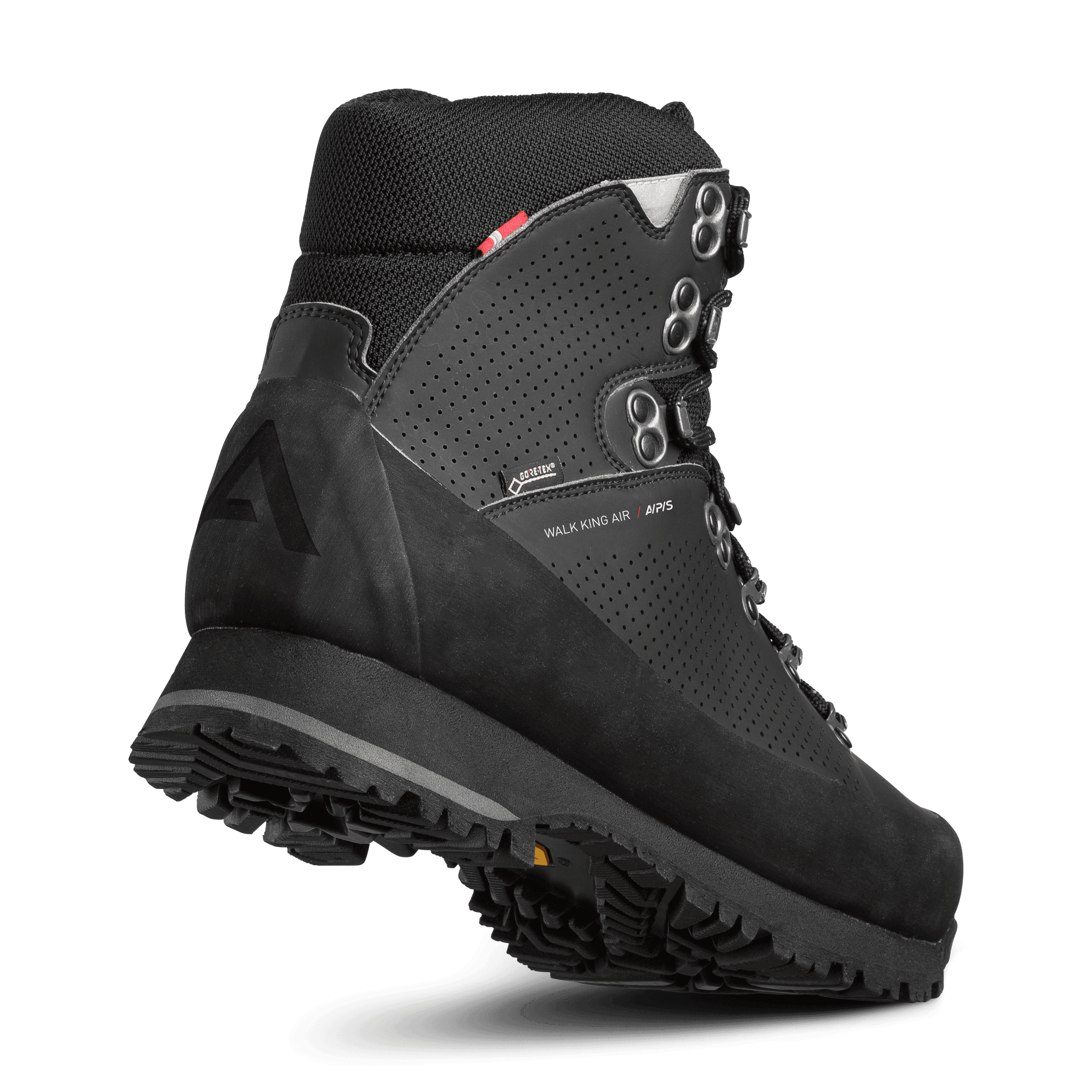 Ready for your next adventure? Meet the ALFA Walk King Air A/P/S GTX This hiking boot is built for comfort, durability, and performance – no matter the terrain. With a breathable and low-maintenance Alfa-Air™ upper and waterproof GORE-TEX® membrane, your feet stay dry and comfortable all day long. The soft top edge and Memoryfoam padding offer a snug, supportive fit, while the rubber mudguard protects against wear and tear. The double lock lacing system makes it easy to adjust for a personalized fit. A lightweight EVA midsole provides excellent cushioning and stability, and the Vibram® Grip A/M/G outsole delivers reliable traction on both wet and dry surfaces. Explore more. Worry less. Hike with ALFA Walk King Air GTX.